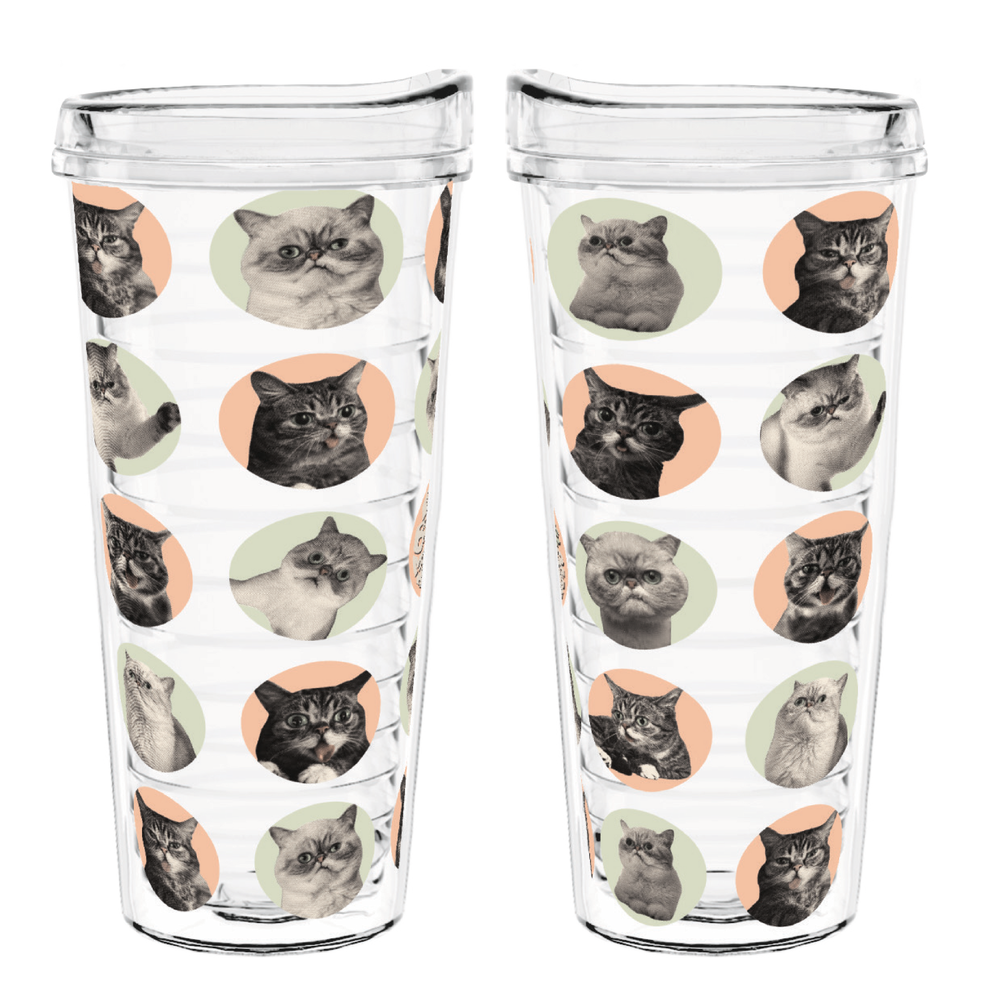 This 22 ounce tumbler features both BUB and Marbles in a clear Pitter Pattern design that lets you see both cats, the color of your beverage, and how much of your drink is left. Price is for one tumbler.